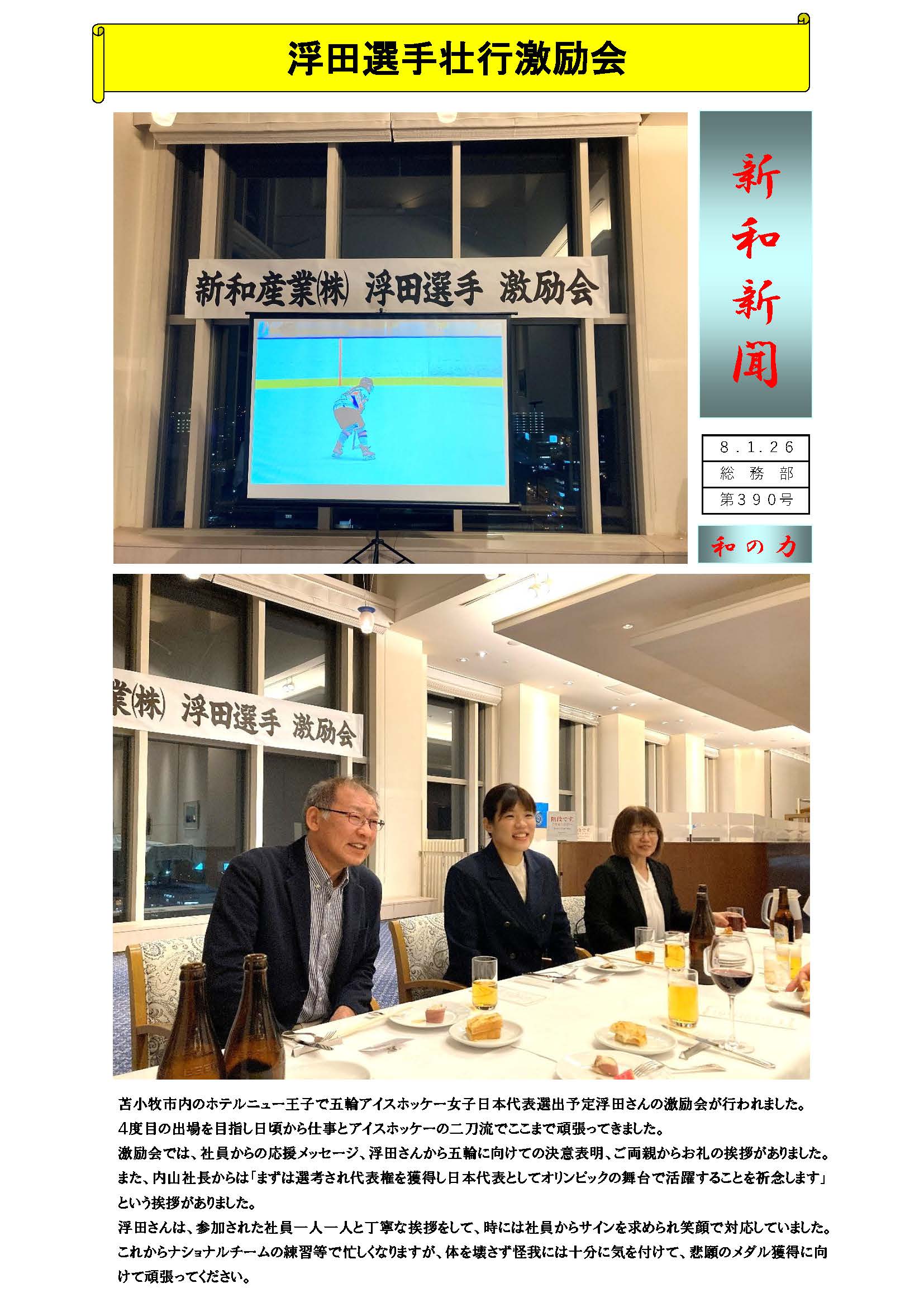 浮田選手壮行激励会 ~ 新和新聞 ~