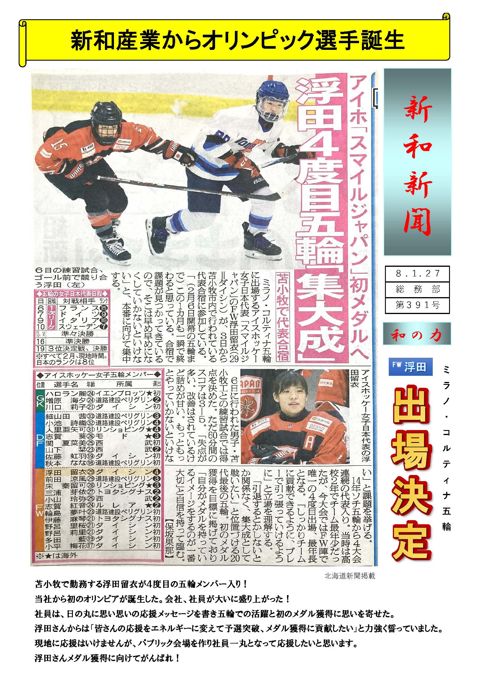 新和産業からオリンピック選手誕生 ~ 新和新聞 ~