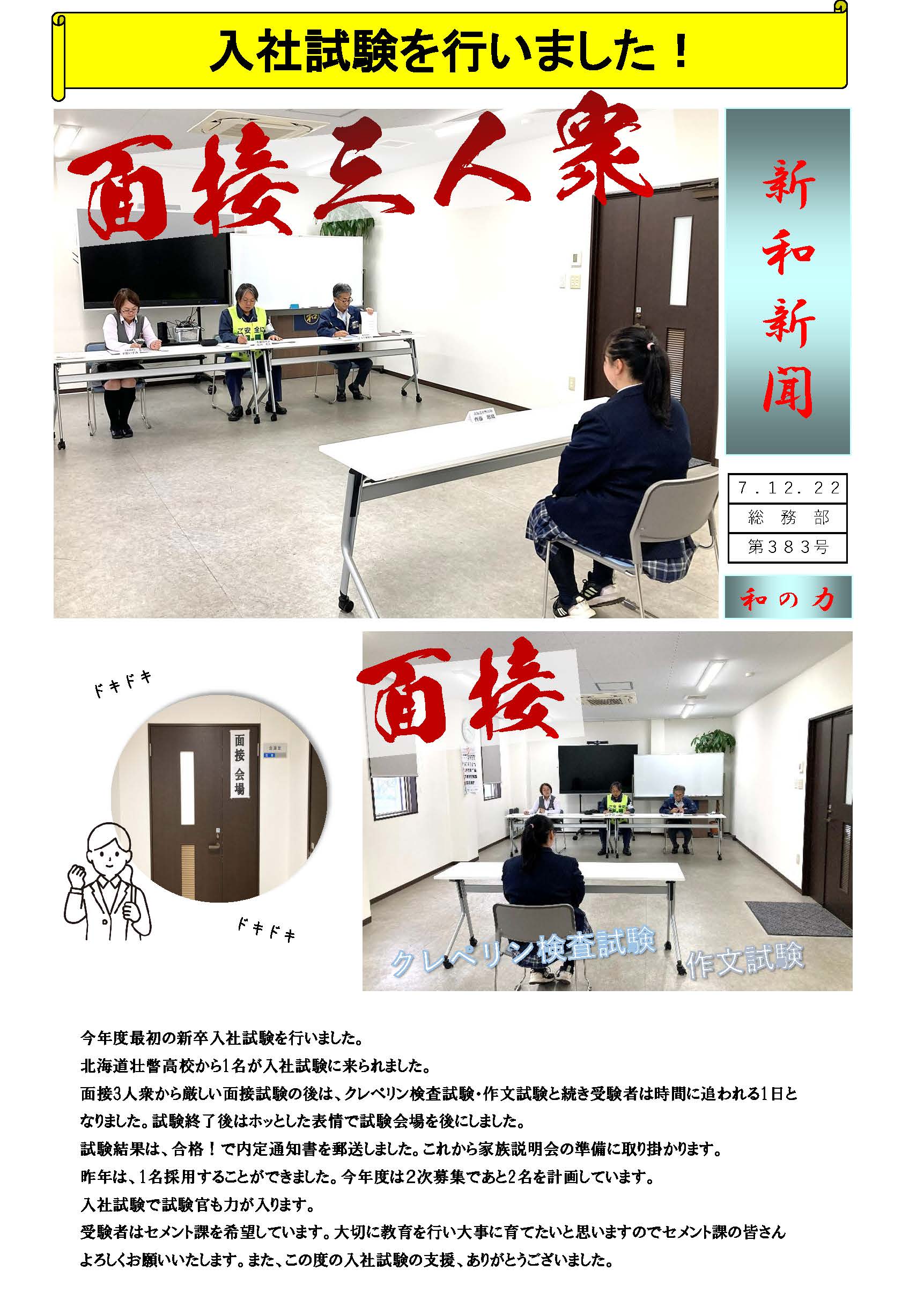 入社試験を行いました! ~ 新和新聞 ~